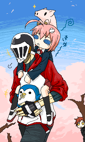 ふたばで描かれているいばりこぶた君の二人と二匹(?)です。