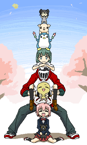 お借りしたのは、上の絵に引き続き、乃子ちゃんとペモ君、いばりこぶた君、そして、
